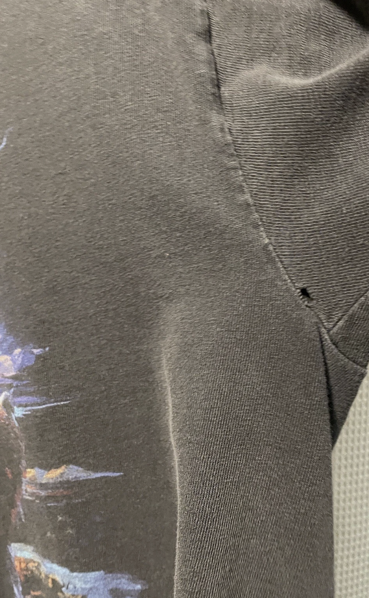 A hole in each armpit and faded to a gray washed black - amazing.