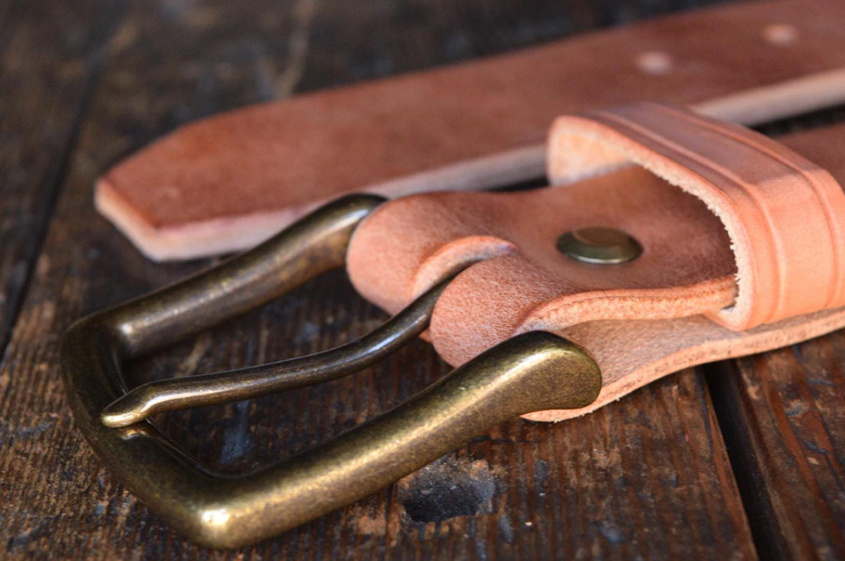 The Mountain Belt is a serious piece of leather. Built from Hermann Oak's Old World Harness leather, this heavy-duty leather belt is not for fragile hearts and delicate trousers.