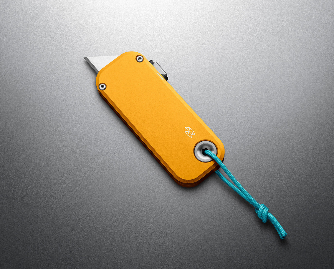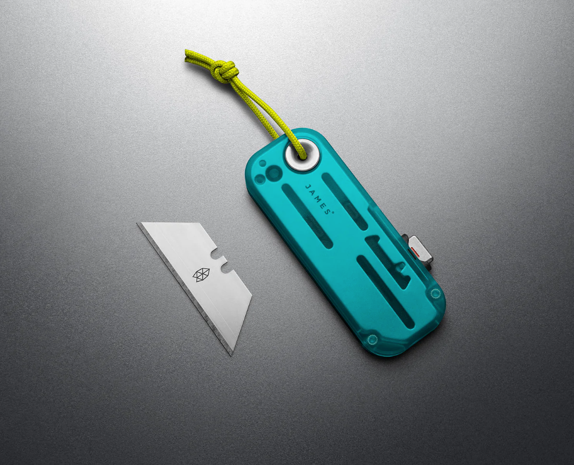 The Palmer packs all the functionality of a classic utility knife in a refined design that sits comfortably in your hand and pocket, featuring a lanyard for easy deployment, and a variety of great colors in both aluminum and clear recycled PCTG handle options. Its patented mechanism allows for tool-free blade changes and buttery smooth action.