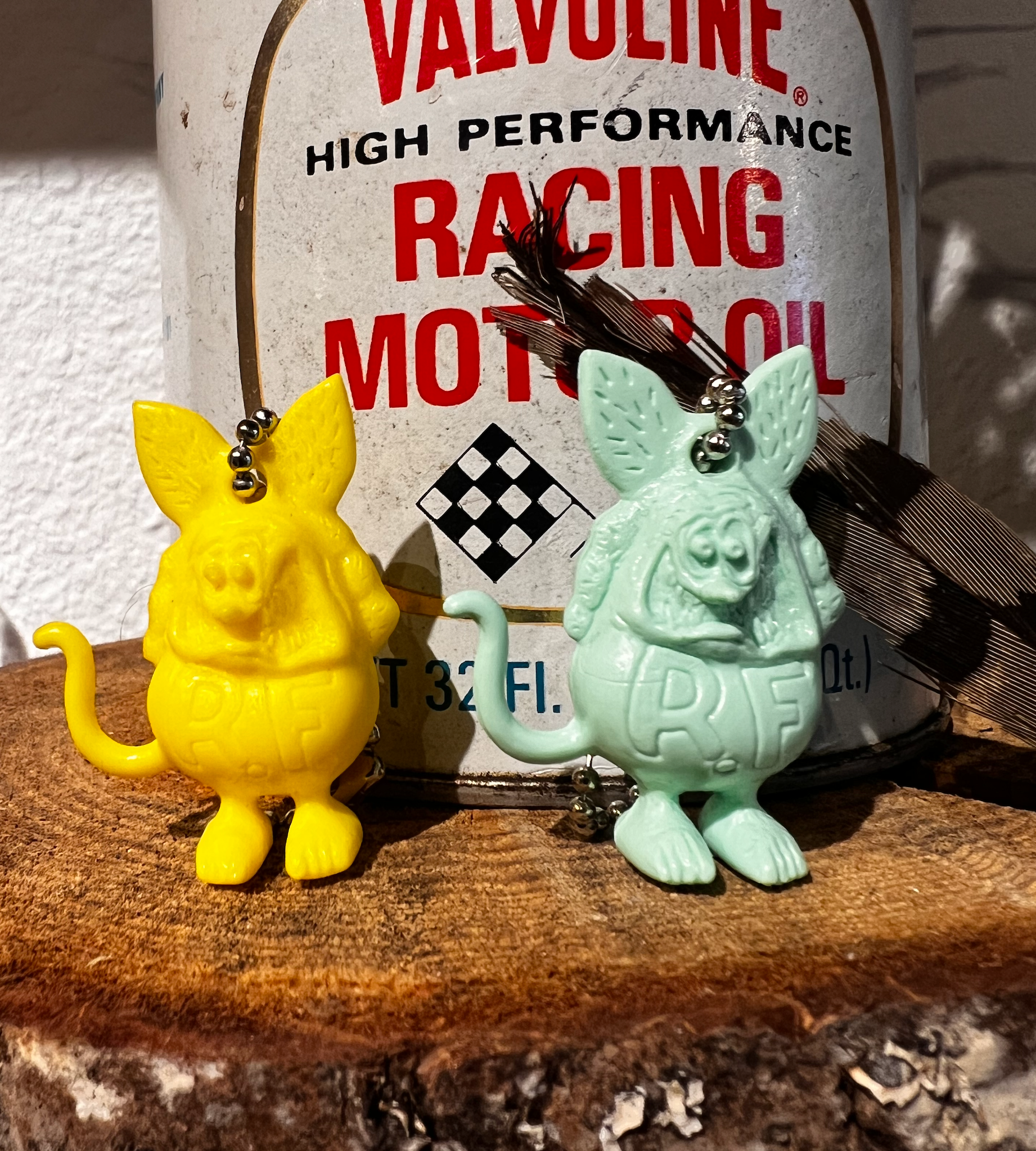 Amazing VTG 1984. These products are a vintage 1984 Rat Fink gumball charm ring hole keychain featuring a mint or yellow color scheme. Made in the United States, this collectible item is a unique piece of advertising memorabilia that showcases the iconic Ed Roth designs. Perfect for collectors of vintage keys or fans of classic car culture, this keychain embodies a nostalgic and retro aesthetic that is sure to appeal to enthusiasts of all ages.