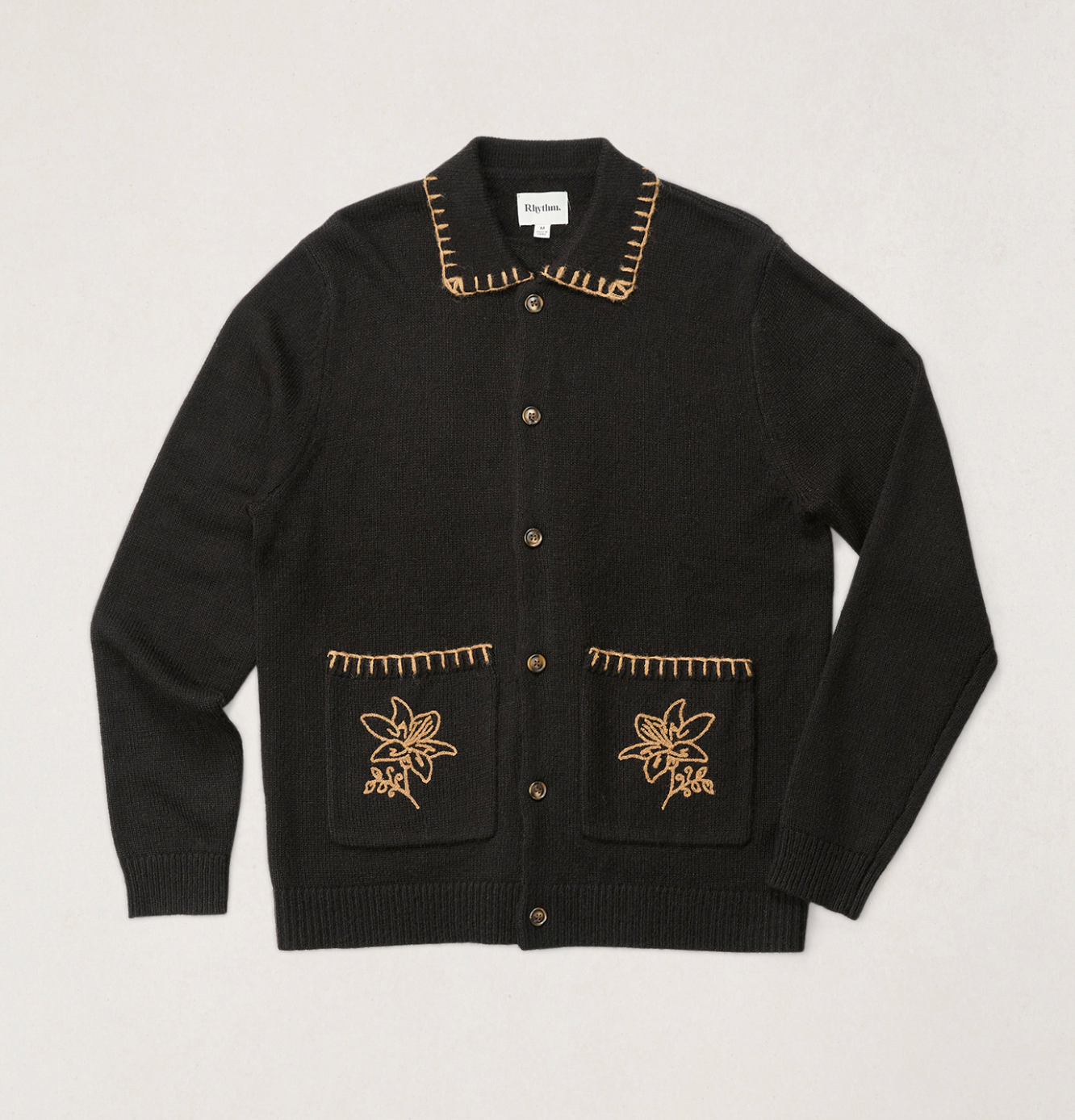 A standout knit polo elevated with whip stitch detailing and chainstitch embroidery. Features a button placket and ribbed trims for a relaxed, textured look. Style lords. Turn on some vinyl, invite friends over for dinner and set the tone.